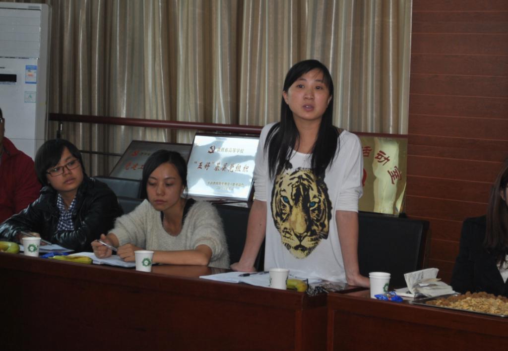 侯晓玲书记对辅导员的角色定位进行了介绍。她说辅导员是开展大学生思想政治教育的骨干力量,是学生日常思想政治教育和管理工作的组织者、实施者和指导者,是学生的人生导师和健康成长的知心朋友。接着,工程系辅导员旷静等就工作中遇到的问题和困惑进行交流。如:学生意外情况的处理、安全问题和如何协调工作与生活的关系等。然后,老辅导员周红娟、张艺凡等进行了经验分享。