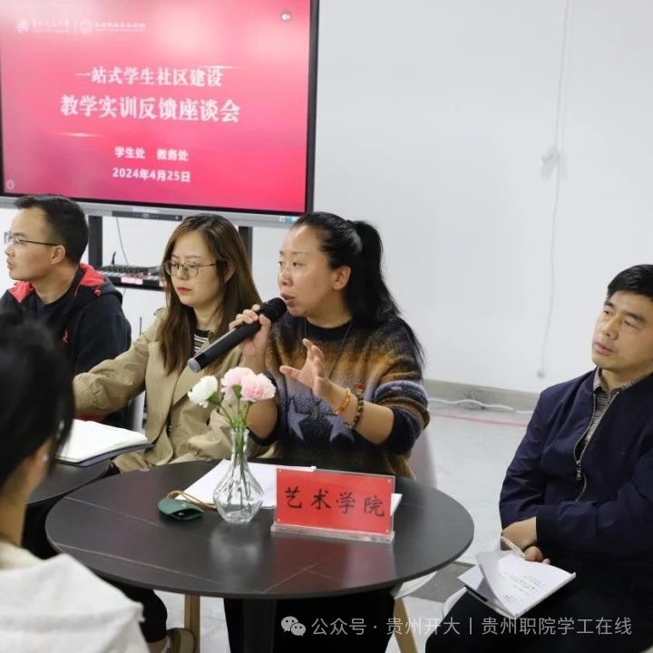为了进一步丰富我校一站式学生社区活动内涵和加强教学实训学风建设,提高学生实践能力和综合素质,2024年4月25日下午,学生处与教务处在学生事务中心联合召开了以“教学实训反馈为主题”的座谈会。会议由教务处副处长马婷婷主持,各学院(部)分管教学工作的副院长、教师代表、学生代表以及学生处相关工作人员参加本次座谈会。
