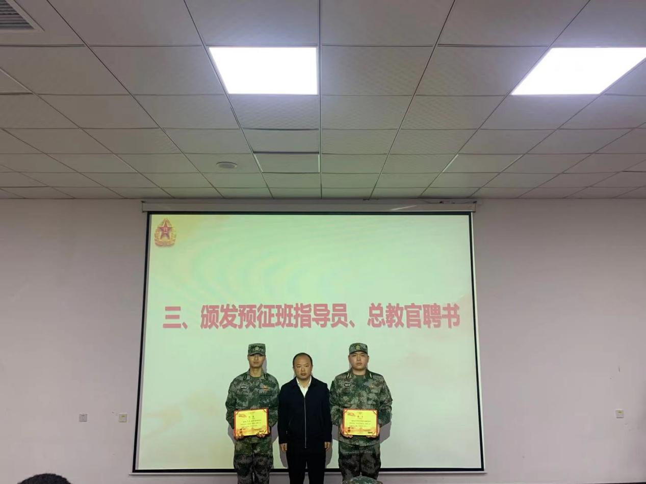 武装部姚楠部长为预征班指导员和学生总教官颁发聘书。