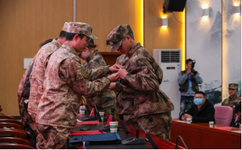 随后各领导为预征班新成员代表佩戴“预征班”学员标志。