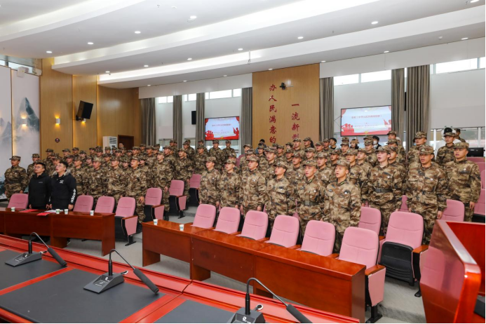 为加强我校“预征班”规范化建设,学校武装部于12月2日在行政楼九楼会议室举行我校2022级预征班新成员入队暨授衔仪式,观山湖区武装部谢勇副部长、军事科王兴明科长、学校武装部乔文副部长、武装部老师、“预征班”全体成员及社团代表参加,学校武装部林书涵老师主持仪式。