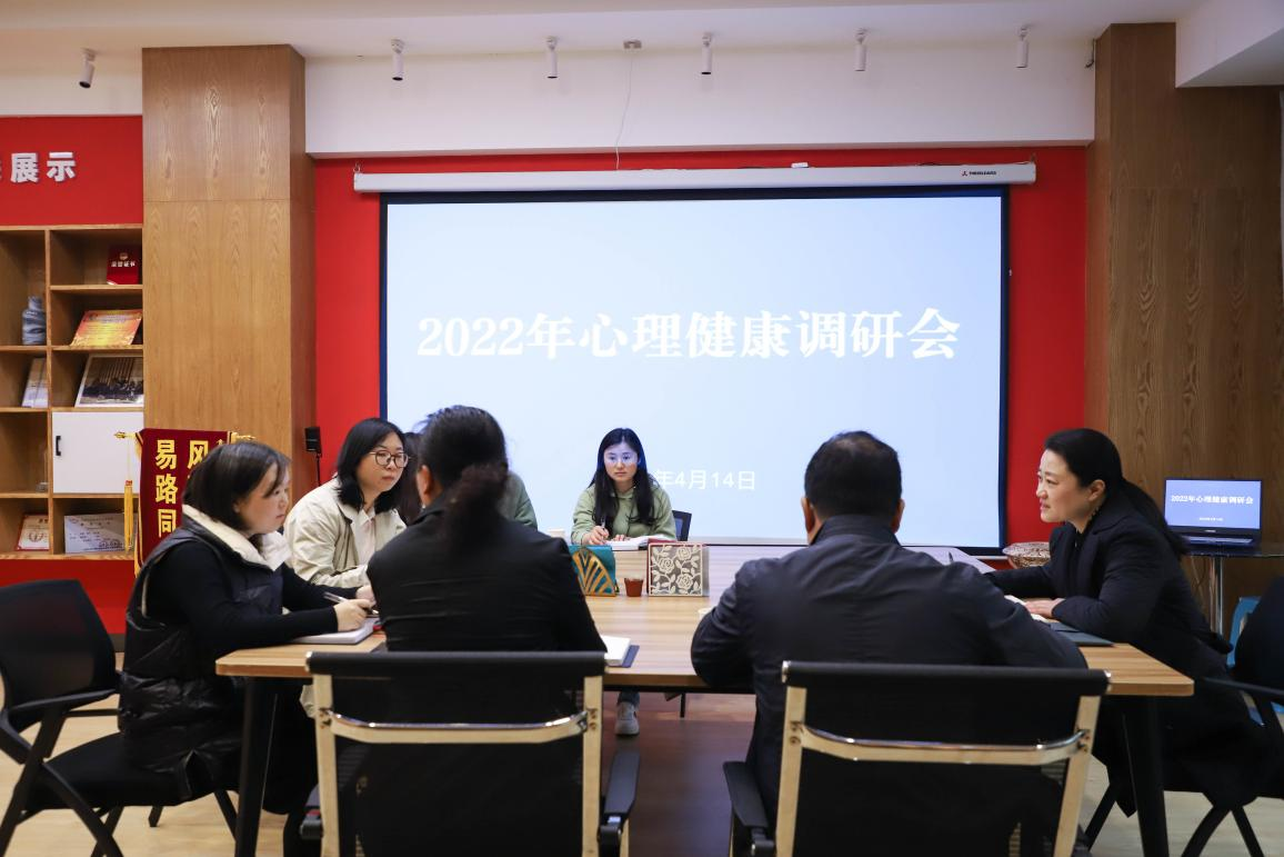 2022年4月14日,贵州开放大学(贵州职业技术学院)心理健康教育与咨询中心组织召开2022年心理工作调研会,副校长于立群、学工部部长罗之军、学工部副部长蒋红、心理咨询中心全体教师参与。