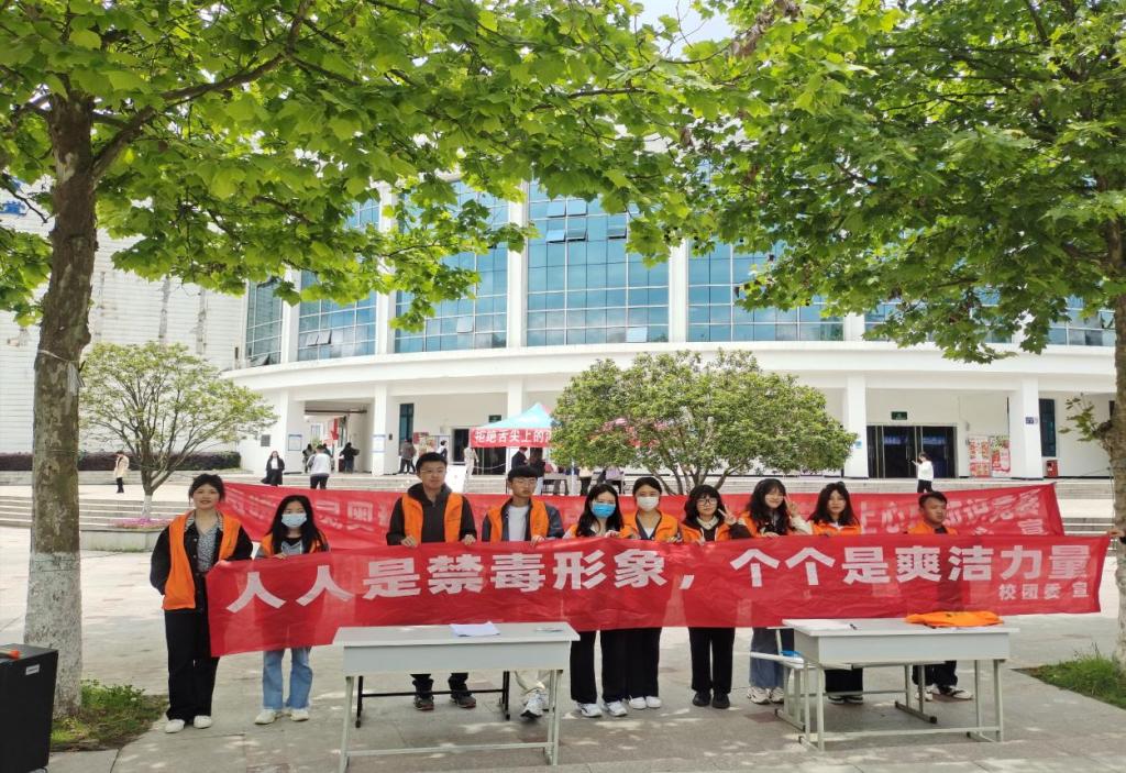 毒品是全球性的灾难,也是全人类共同的敌人,不仅严重危害人类的健康,败坏社会风气,而且直接导致和诱发各种犯罪,一旦涉毒,吸毒者在自我毁灭的同时,往往使自己的家庭变得支离破碎,威胁着社会的政治稳定和经济发展。遏制、减少直至最终消除毒品犯罪,是全人类共同的愿望。每年的6月26日是国际禁毒日,为进一步宣传普及禁毒知识,营造良好的校园氛围,保障校园师生健康生活。在2022年5月20日上午,贵州开放大学健康服务社的同学们开展了以“人人是禁毒形象,个个是爽洁力量”为主题的禁毒知识宣传教育活动。