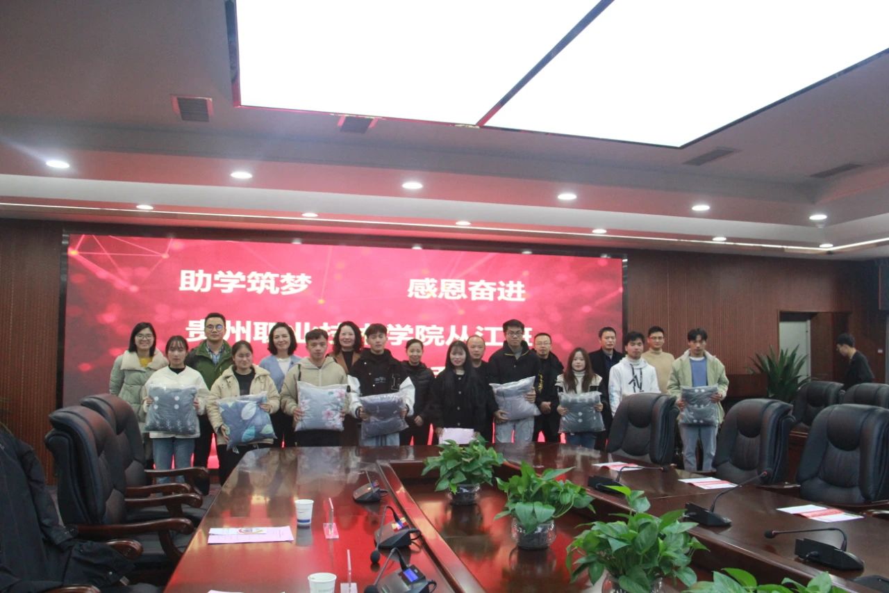 最后,参会领导和老师为从江班的学生发放过冬物资。在寒冬骤冷之际,从江班的同学们感受到了学校送达的温暖。