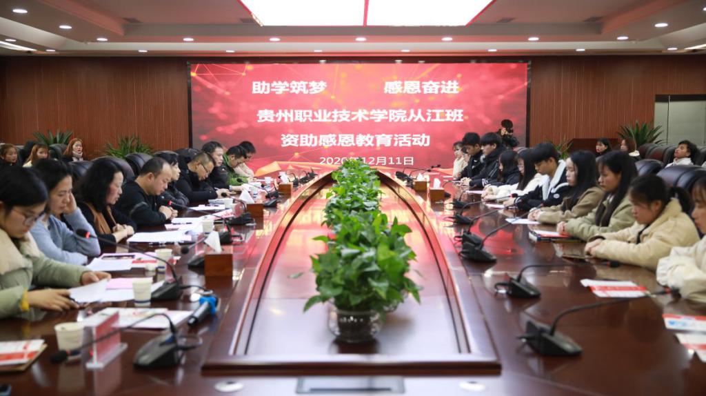 2020年是全省脱贫决战决胜之年,为进一步做好我校学生资助管理工作,更好服务困难学生,做到教育精准扶贫工作科学化、精细化,进一步提高学生感恩意识,2020年12月11日中午1:00,学生资助管理中心在学校科研楼3楼会议室举办了以“助学筑梦 感恩奋进”为主题的从江班资助感恩教育活动。学校党委委员、党委组织部部长张仁俊及党委组织部全体老师、学生资助管理中心主任姚楠及学生资助管理中心全体老师、2020级从江班的39名同学参加了本次活动。