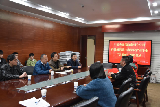寒冷冬日,气温骤降,但一场爱心行动正在校园里温暖着我们。11月26日下午15:00,中国大地保险贵州分公司总经理吴长椿一行来到贵州职业技术学院,为学校的贫困学生们带来了300套冬日床上用品,与学生们交流谈心并举行了捐赠仪式,将物资亲手送到学生们手上。