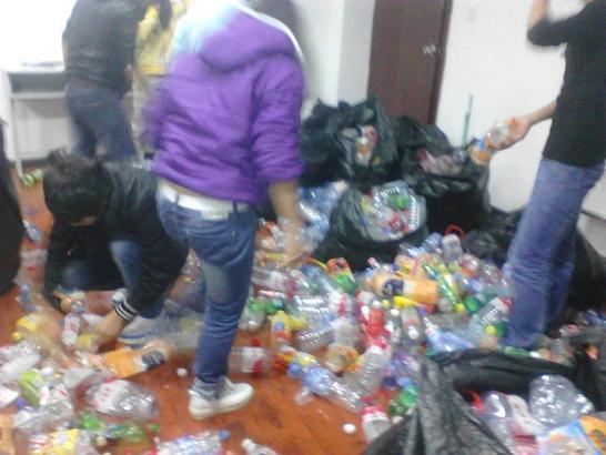 此次废品回收活动,是勤工助学办公室主席团精心策划的,受到了全体成员的积极支持。本着“回收废品,美化校园,净化心灵”的宗旨,每个成员团结合作,发扬不怕脏不怕累的精神,利用课余周末时间,穿梭于教室、寝室、校园的各个角落,重拾同学们丢弃的塑料瓶、塑料袋、废纸等生活用品。在活动期间,同学们随时都可以看到勤工助学办公室成员勾着背的身影。