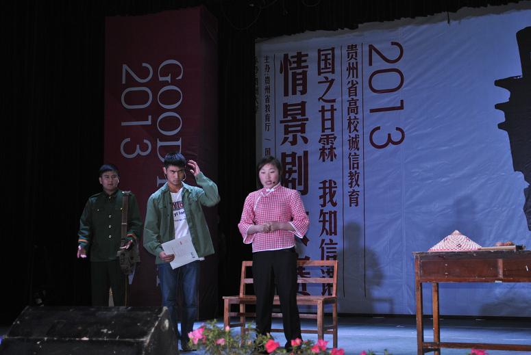 2013年12月17日,由贵州省教育厅、国家开发银行贵州省分行联合举办的贵州省国家助学贷款诚信教育情景剧大赛在贵州大学北校区大礼堂举行,我院学生资助管理中心选送的《雨露》参加本次比赛并获高职类院校第三名。