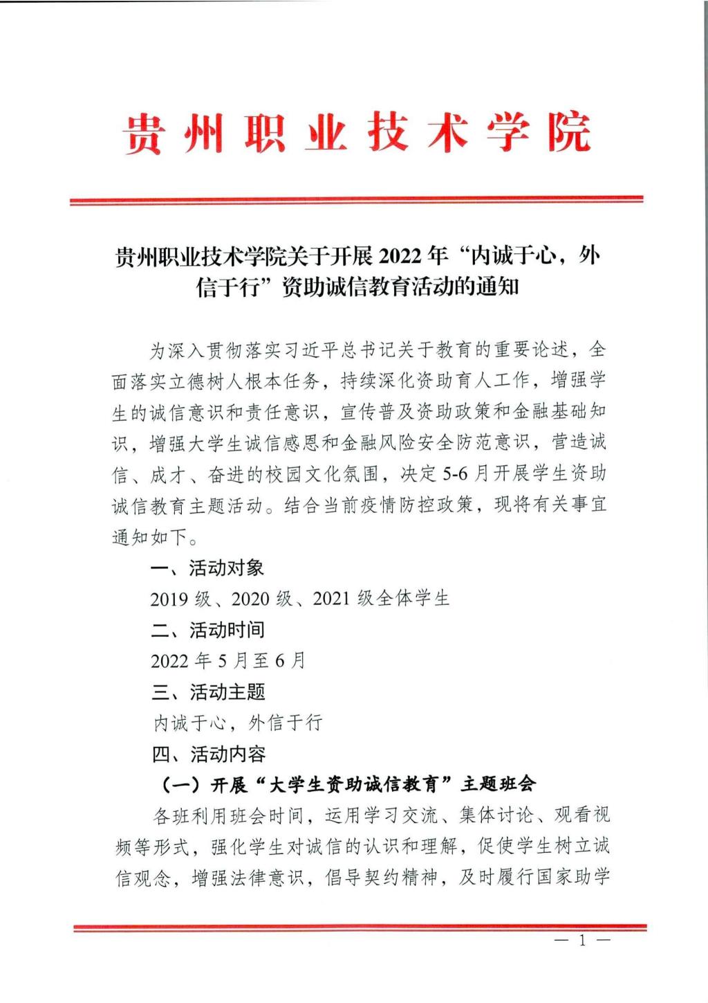 贵州职业技术学院关于开展2022年“内诚于心,外信于行”资助诚信教育活动通知
