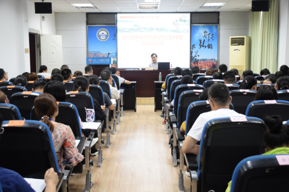 7月9日,贵州广播电视大学(贵州职业技术学院)辅导员骨干专题研修班在武汉大学马克思主义学院M301报告厅举行开班仪式,教育部高校辅导员培训和研修武汉大学基地主任、原武汉大学党委副书记、中央马工程首席专家骆郁廷、武汉大学辅导员基地工作人员和我校42名辅导员、学生工作者参加开班仪式。