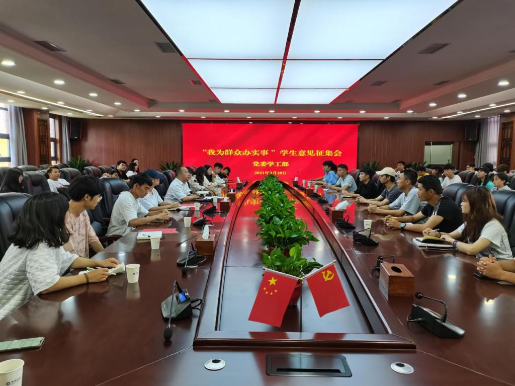 9月28日上午,学工部在教科楼三楼会议室组织召开“我为群众办实事”学生意见征集会。学工部领导、有关负责人以及学生代表30余人参加意见征集会。会上,同学们围绕教学设备更新、学生活动场地、体育器材开放等方面提出意见建议。