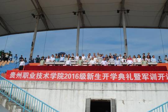 金秋九月,硕果飘香,又是一年收获季,我校迎来了3200多名2016级新同学。9月3日上午10:00,贵州职业技术学院2016级新生开学典礼暨军训开训动员大会在体育场隆重举行。学校党委书记邓惠宾、校长李皖、党委副书记袁仁庆、郭万才、副校长龚辉、徐伟、武警贵州省总队副参谋长李沛、第一支队副支队长张明武、中队长宋庆泉出席大会。全校中层干部、教师代表、全体辅导员、老生代表和2016级新生参加。大会由副校长、军训团团长徐伟主持。