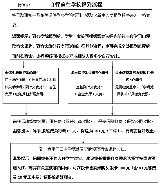 下面是流程图和接待点示意图(含自行报到和各接站点集中乘车),同学们可以提前了解。