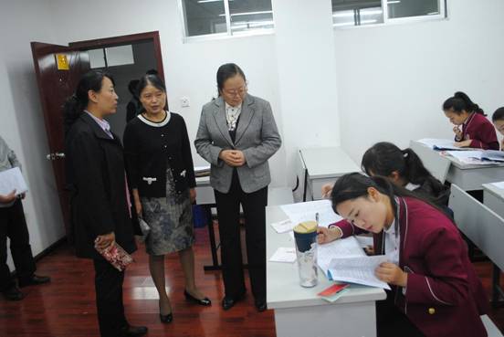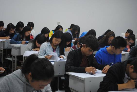19:00整,考试准时进行。各系2015级辅导员、学长负责监考,李勤副校长了解试题难度,亲临每间考场检查考试情况,学生认真答题,整个考试井然有序,21:00考试圆满完成。