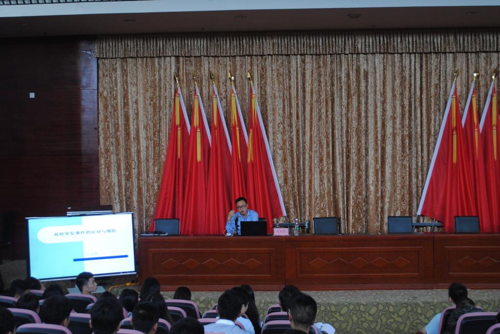 随后,毛永俊副教授指出面对突发事件最好的上策是预防,将突发事件解决在萌芽状态中。做好突发事件的预防,辅导员和学生干部要细心观察学生情况的变化,早发现、早干预,在大型活动中要精心做好安全方案,做到有的放矢。