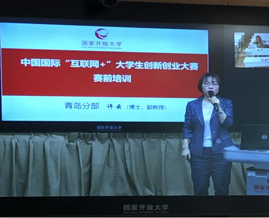 国家开放大学学生工作与教师发展部徐刚老师对本次大赛实施方案进行介绍,具体解读了参赛项目要求,赛程、评审规则、奖励机制、参赛问题等。青岛分部的许云博士为大家进行了赛前培训。许博士分别从参加创新创业大赛的目的和任务、“三高三好”看“大创赛”,弄懂职教塞道评审规则,了解竞争对手,抓实参赛组织工作等几方面为大家做了培训。