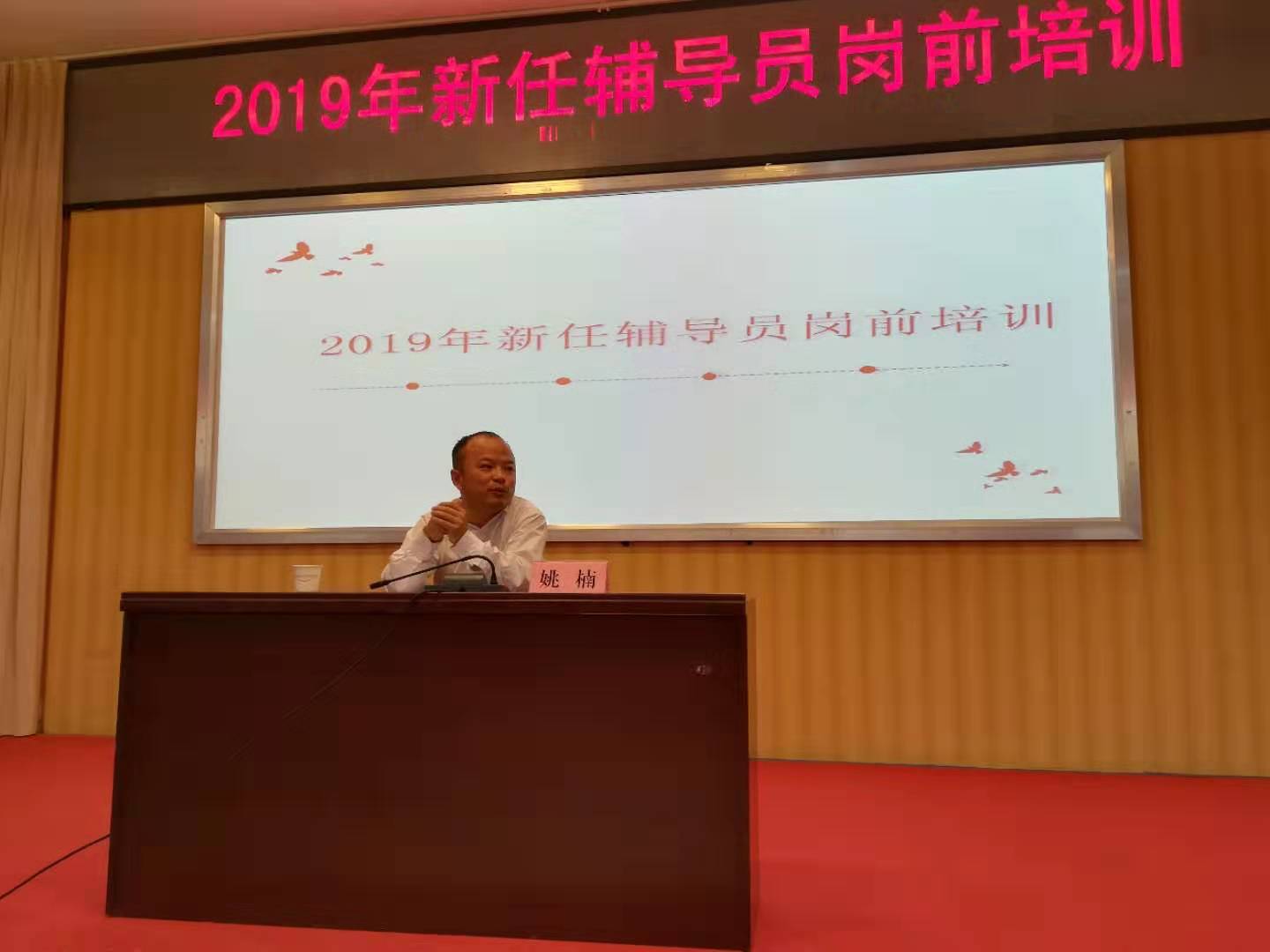 本次培训由党委学工部副部长姚楠同志为大家作报告。姚楠同志的报告从“学校、学生、责任”三个方面对如何做好一名电大(职院)辅导员进行了介绍。首先,姚处长从自身感受出发谈了自己15年来对学校的认识,这是一所致力于社会公平的学校,这是一所拼搏乃至于拼命的学校,这更是一所充满活力、改革创新的学校。其次,姚处长根据我们的学生根基浅底子薄,贫困面大程度深,心智行为不成熟等特点号召辅导员们继续鼓励,呵护和引导学生。姚处长说:“辅导员工作只要你用心去做,就一定会有收获,而且会得到极大的满足。因为我们从事的是世界上最伟大的工作,改造一个人的思想,让他们变得更好。”最后,姚处长带大家一起重温了辅导员工作职责,希望大家从今天开始认真履行好自己的职责,以实际行动为祖国70华诞献礼。