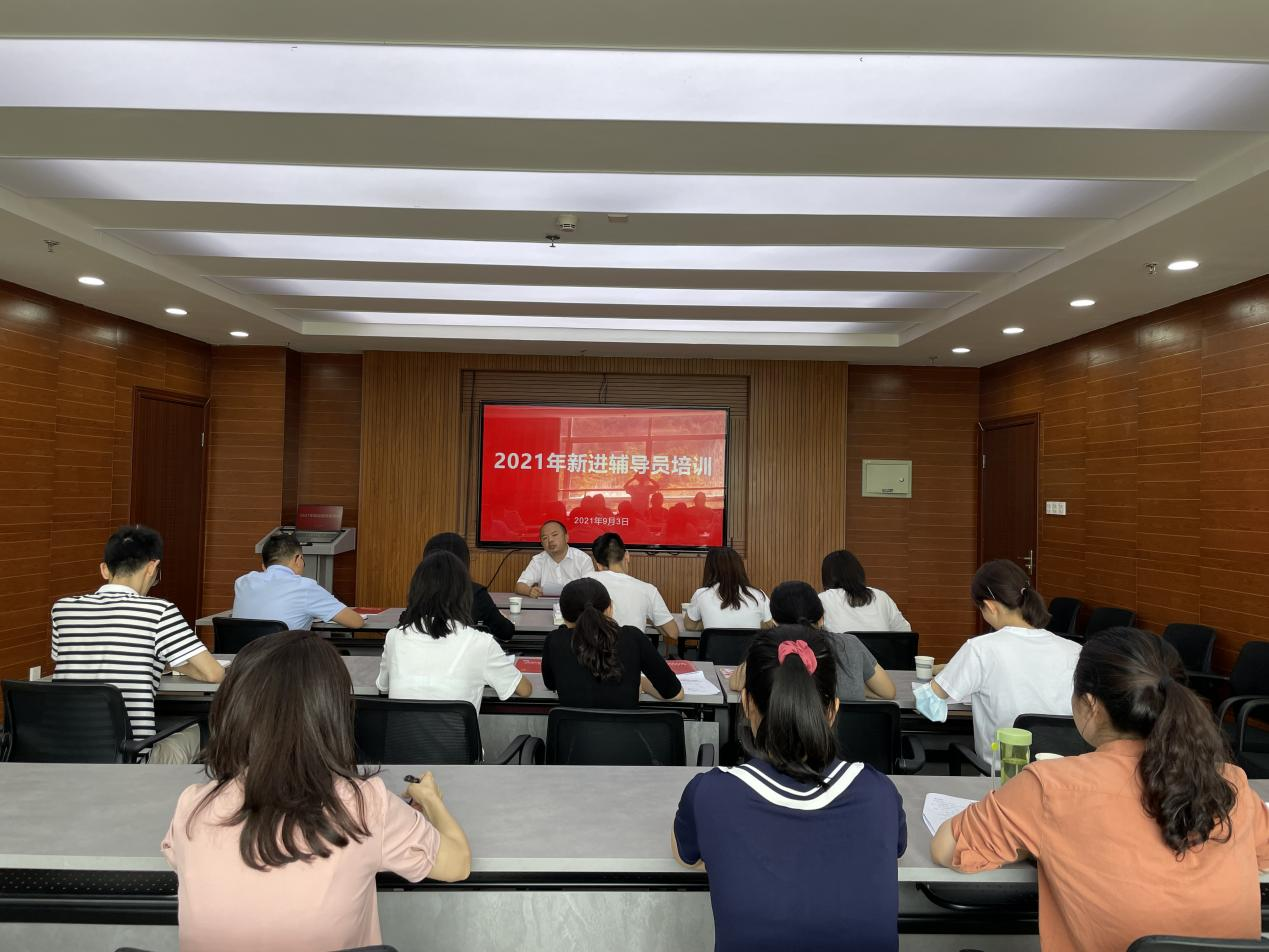 2021年9月3日,党委学工部在行政楼七楼会议室对我校新进辅导员进行岗前培训。培训会由学工部思想政治教育科赵盛梅老师主持,学工部部长姚楠主讲,各学院辅导员办公室负责人和新进辅导员参加。