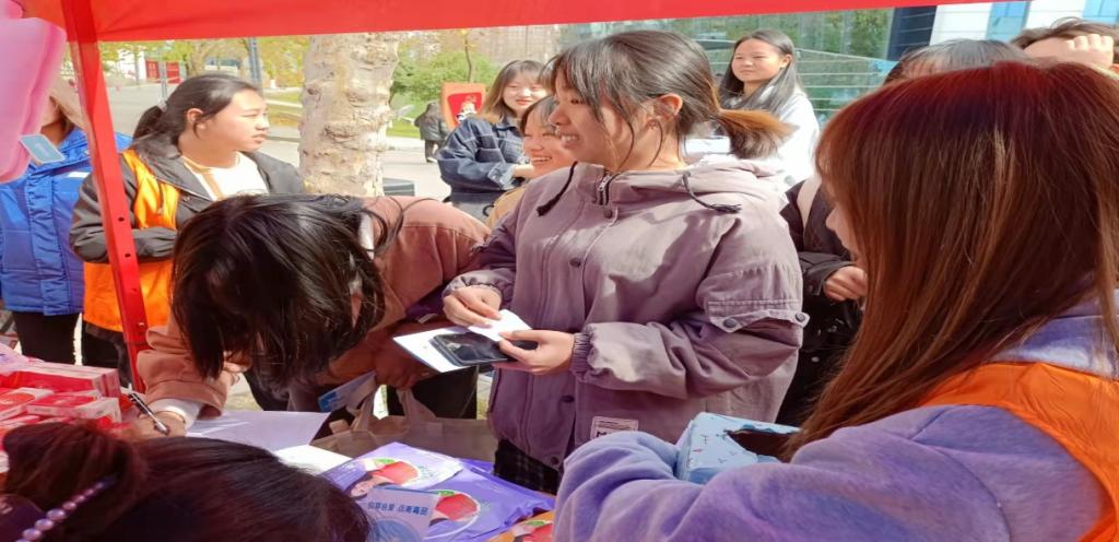 为此贵州职业技术学院健康服务社(大学生防艾协会)在一食堂门口开展了防艾活动,我们进行了防艾知识竞答活动,从而让同学们获得知识的同时获得快乐。