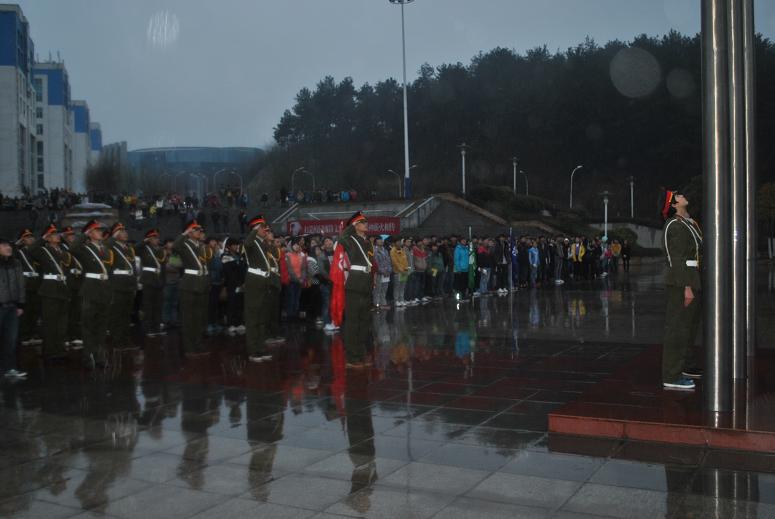 7点30分,升旗仪式准时举行。首先,由16人组成的护旗队身着绿色军装,迈着整齐步伐出旗。随着庄严的国歌声的响起,全体同学面向国旗行注目礼,鲜艳的五星红旗在职院上空冉冉升起。升旗仪式正式完成。最后,学生处于立群处长做国旗下的讲话。她对全体同学的平安归来表示高兴,希望全体同学把高昂的爱国热情转化为学习的动力,再接再厉,以学生“一日行为规范” 严格要求自己,勤奋学习,学以致用,做一个全面发展的时代新人。