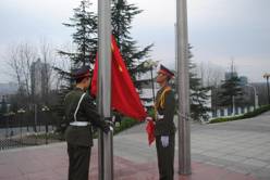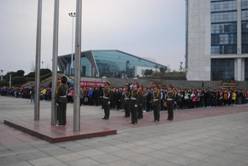 日清晨,学生处全体成员、各系党总支、团总支、值班辅导员和全体在校学生在校前广场举行了升旗仪式。