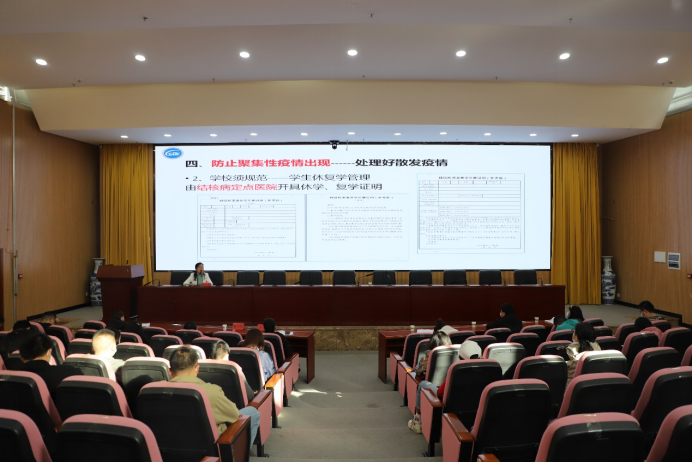 李进岚老师针对不同传染病进行了分析,从艾滋病、结核病等传染病的基础知识、致病机理、传染病的流行概述、预防策略和措施、学校常见传染病的流行特征和临床表现以及预防控制措施等方面进行了全面细致的讲解。何昱颖老师从肺结核预防性治疗方面为辅导员讲解了肺结核预防性治疗的方式、步骤、注意事项等。各位老师都认真听讲,虚心学习。本次培训不仅让大家了解到专业的防病知识,也明确了平时卫生习惯的改善目标和方向,大家受益匪浅。此次讲座为预防和控制传染病的发生,确保师生健康打下了坚实的基础,为创建平安、和谐校园提供了绿色保障。