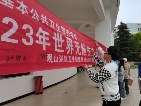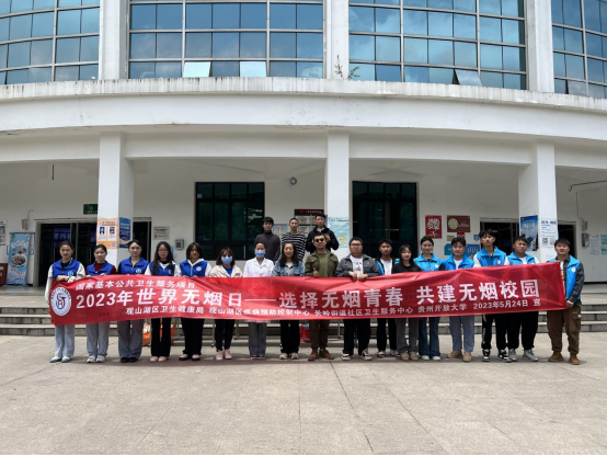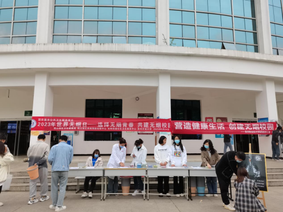 为加快推进无烟校园建设,引导青少年树牢健康第一责任人的意识,全面营造校园无烟环境。2023年5月24日中午,学校学工部联合观山湖区卫生健康局、观山湖区疾控中心、长岭街道社区卫生服务中心开展“选择无烟青春,共建无烟校园”为主题的世界无烟日活动。