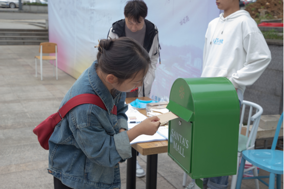 第三个环节是“爱的投递”。老师和同学们用信纸以“爱”为主题写下对自己或他人的“爱”。有的写给过去的自己,与那个不完美但很真实的自己告别,感谢过去所经历的一切,不管顺境还是逆境都是成长的动力。有的写给现在的自己,鼓励自己一步一个脚印,珍惜当下,活出精彩。有的写给未来的自己,随着这份“爱”的投递,小小的信纸寄托对未来的期盼。还有的写给他人,表达深深的祝福。