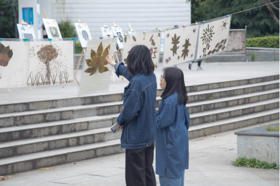 活动现场,老师和同学们参观心理科普展,了解心理健康基本知识,欣赏同学们用树叶创作的以“爱”为主题的作品,感受作者创作中的满满爱意。