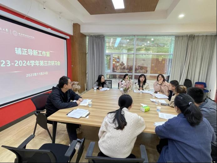 11月24日上午,学工部辅正导新工作室组织各学院辅导员代表在图书馆一楼辅导员发展中心开展了本学期第三次研讨。