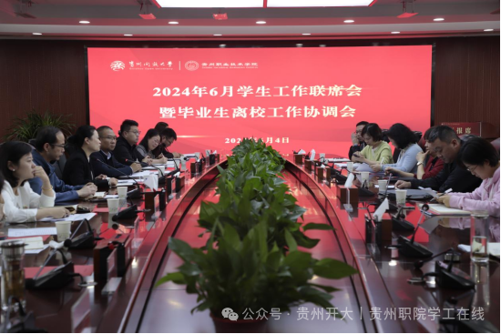 2024届毕业生离校在即,为统筹部署离校相关事宜,学工部于6月4日在综合楼三楼会议室召开2024年6月学生工作联席会,党委委员、副校长于立群出席会议,宣传部、教务处、招就中心、团委、保卫处、后勤处、财务处、图书馆、各学院书记以及全体辅导员参加。