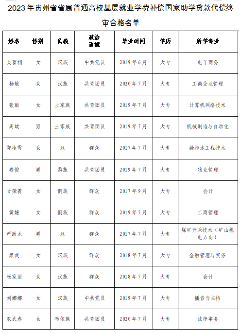 现将教育厅终审合格名单进行公示,公示期为2023年10月16日-10月20日。在公示期内,如有异议,请直接或拨打电话向学生资助管理中心反映。电话:0851-85900826。